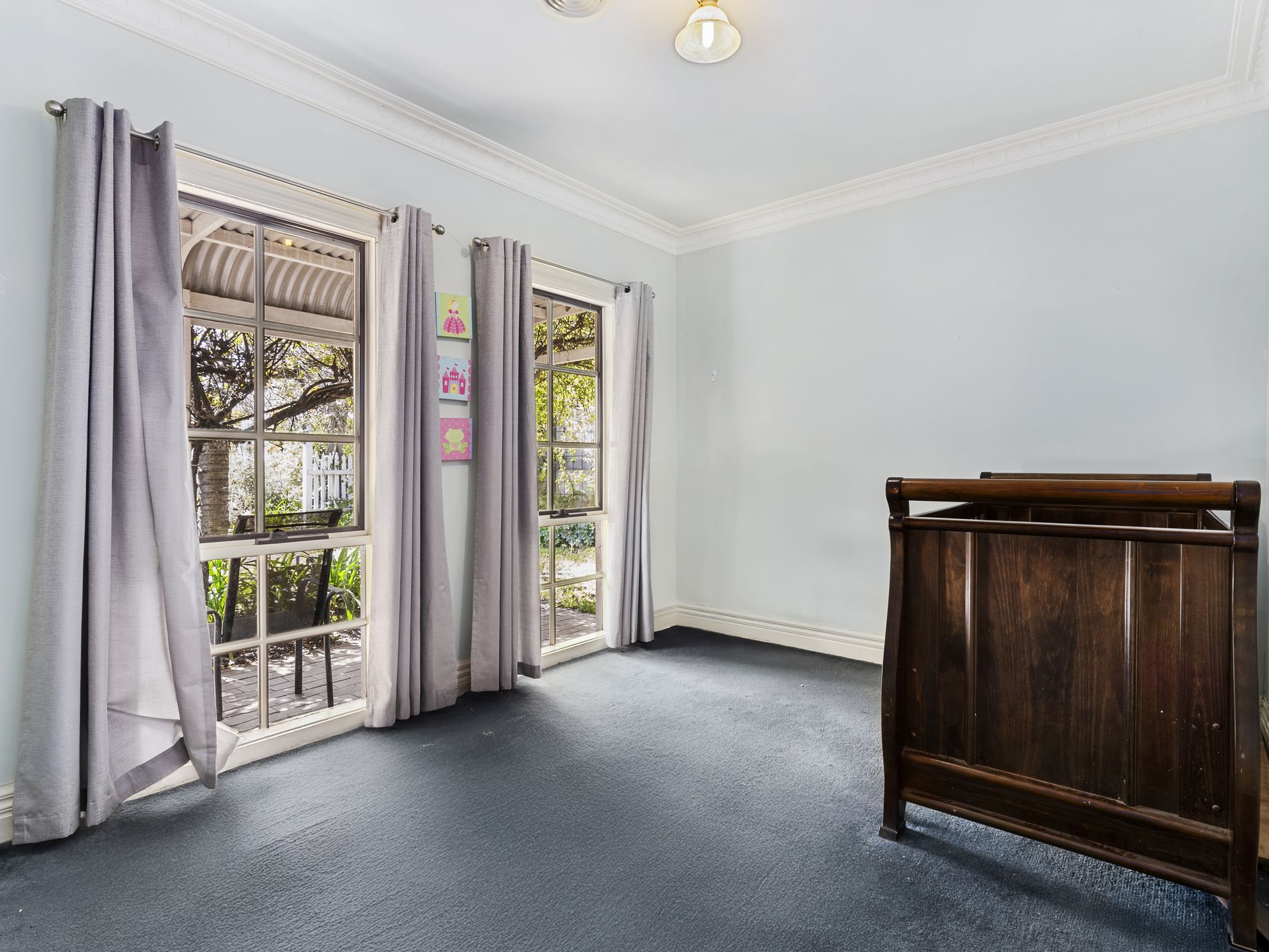 The home also includes a large laundry with ample storage and direct access to the rear garden. Throughout, you’ll find high ceilings, polished floorboards, decorative cornices, and traditional bullnose verandahs, all adding to the property’s enduring charm. Comfort is assured year-round with ducted heating and cooling.