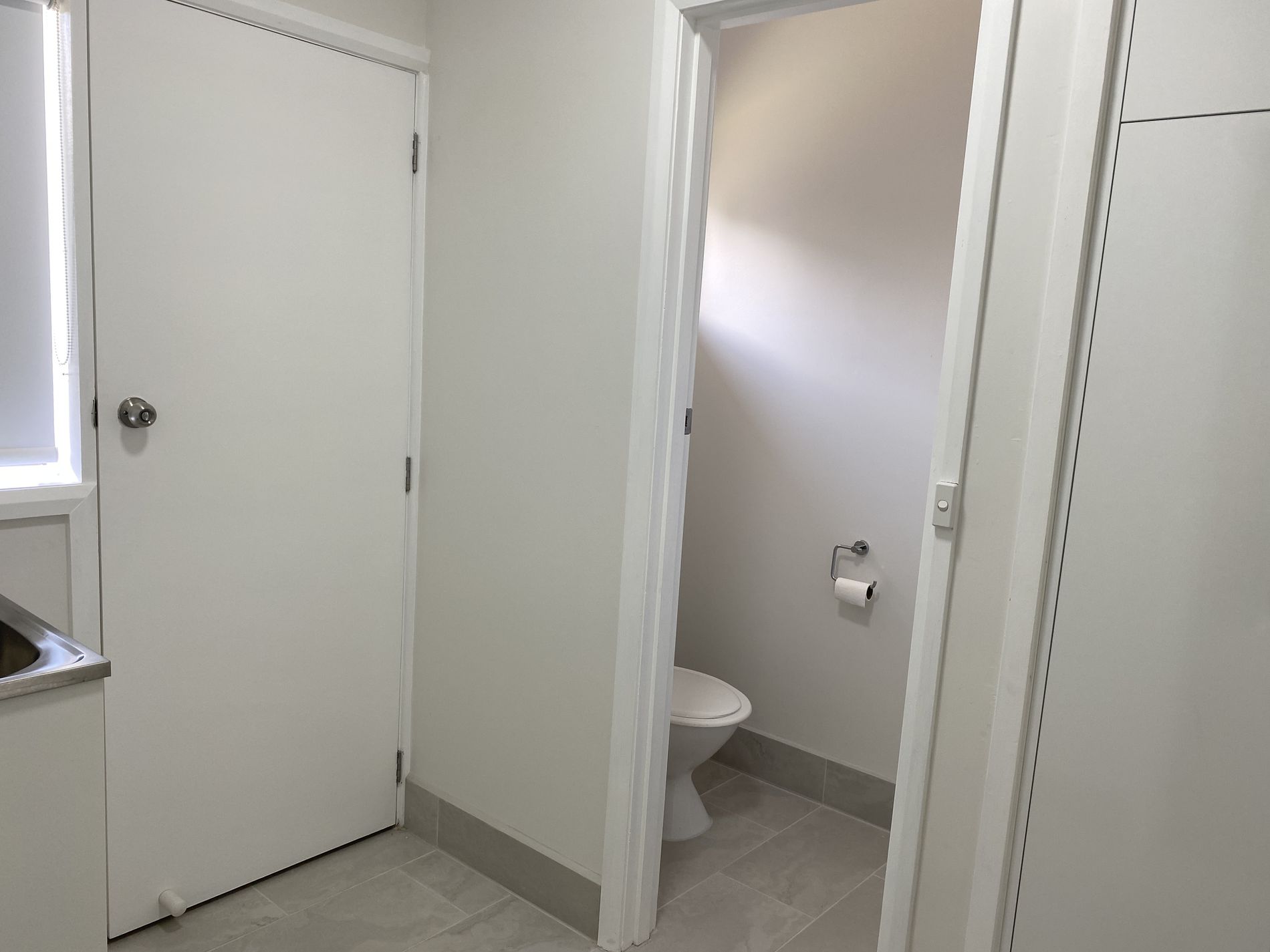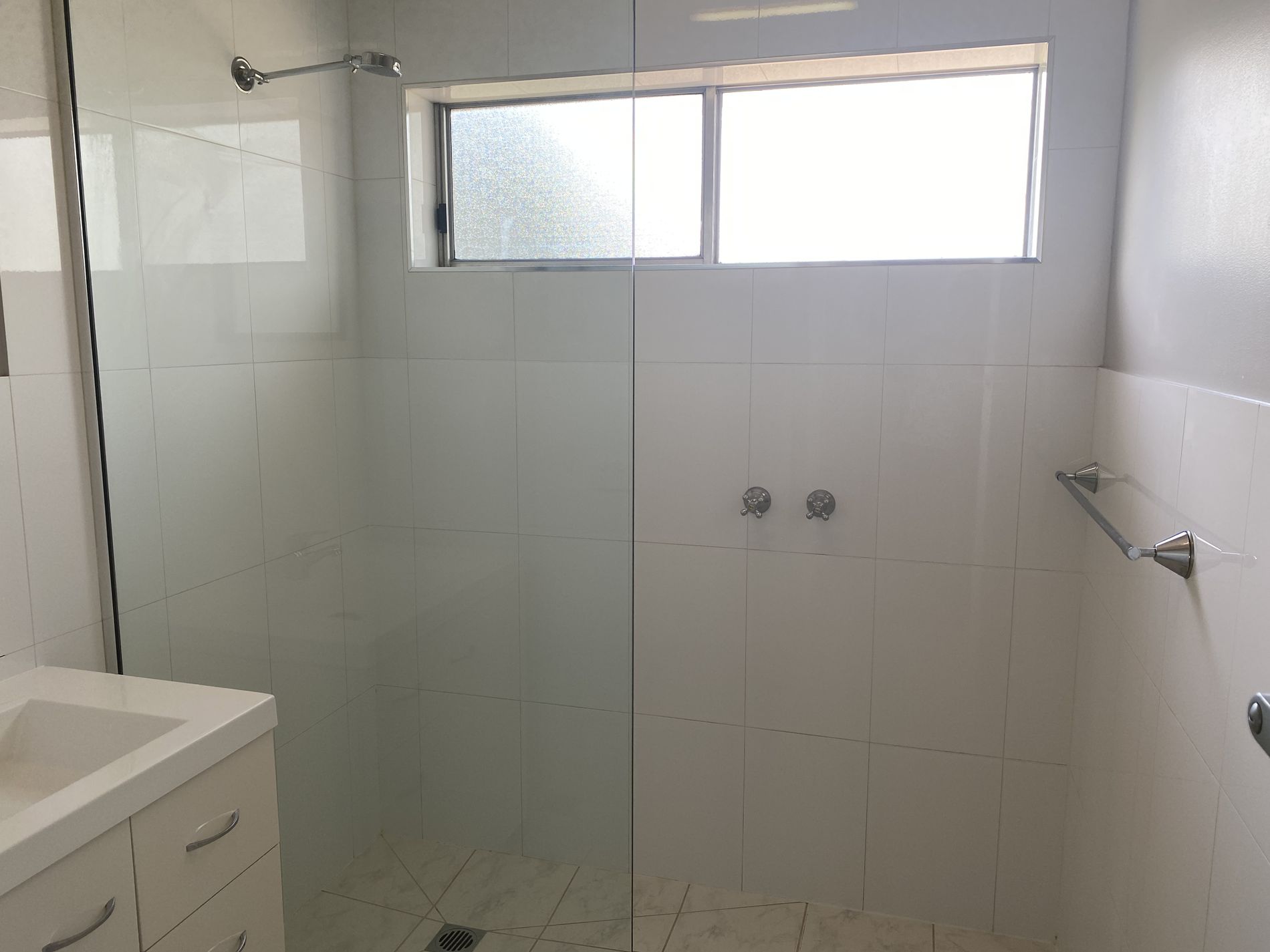 Bathroom has a great sized shower, vanity and separate toilet.