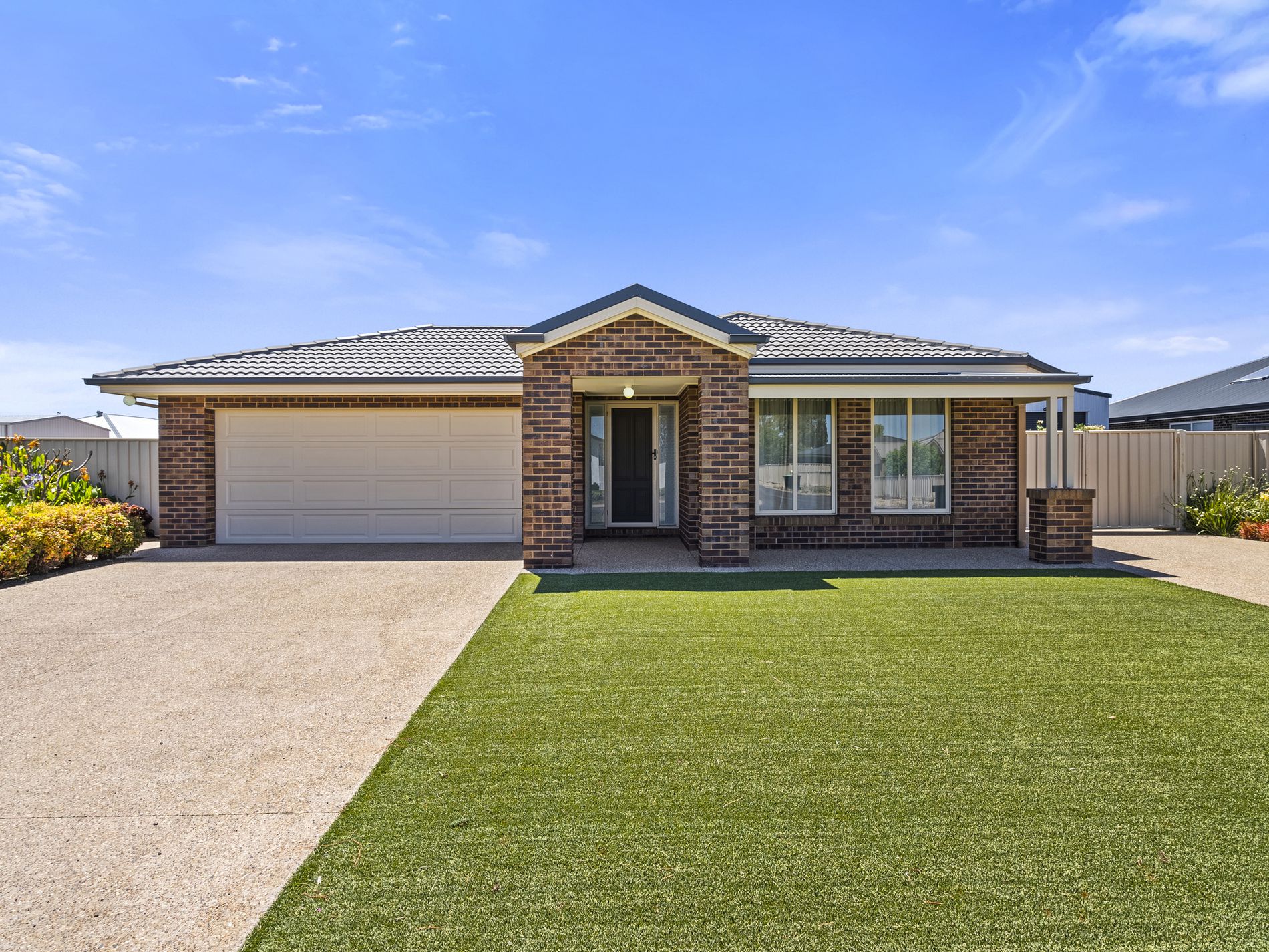 Low-maintenance living is assured with quality artificial turf at the front and rear, simple garden beds along the driveway, and solar panels to help reduce energy costs.