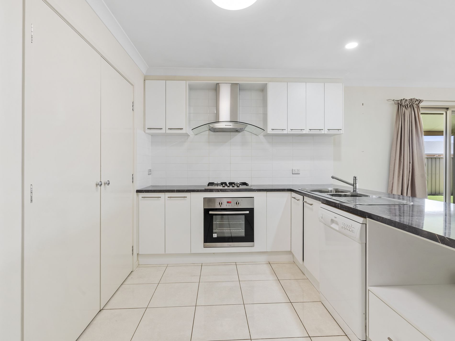 The laundry is well-sized with bench space, a deep laundry sink, and sliding door access to the side of the home.