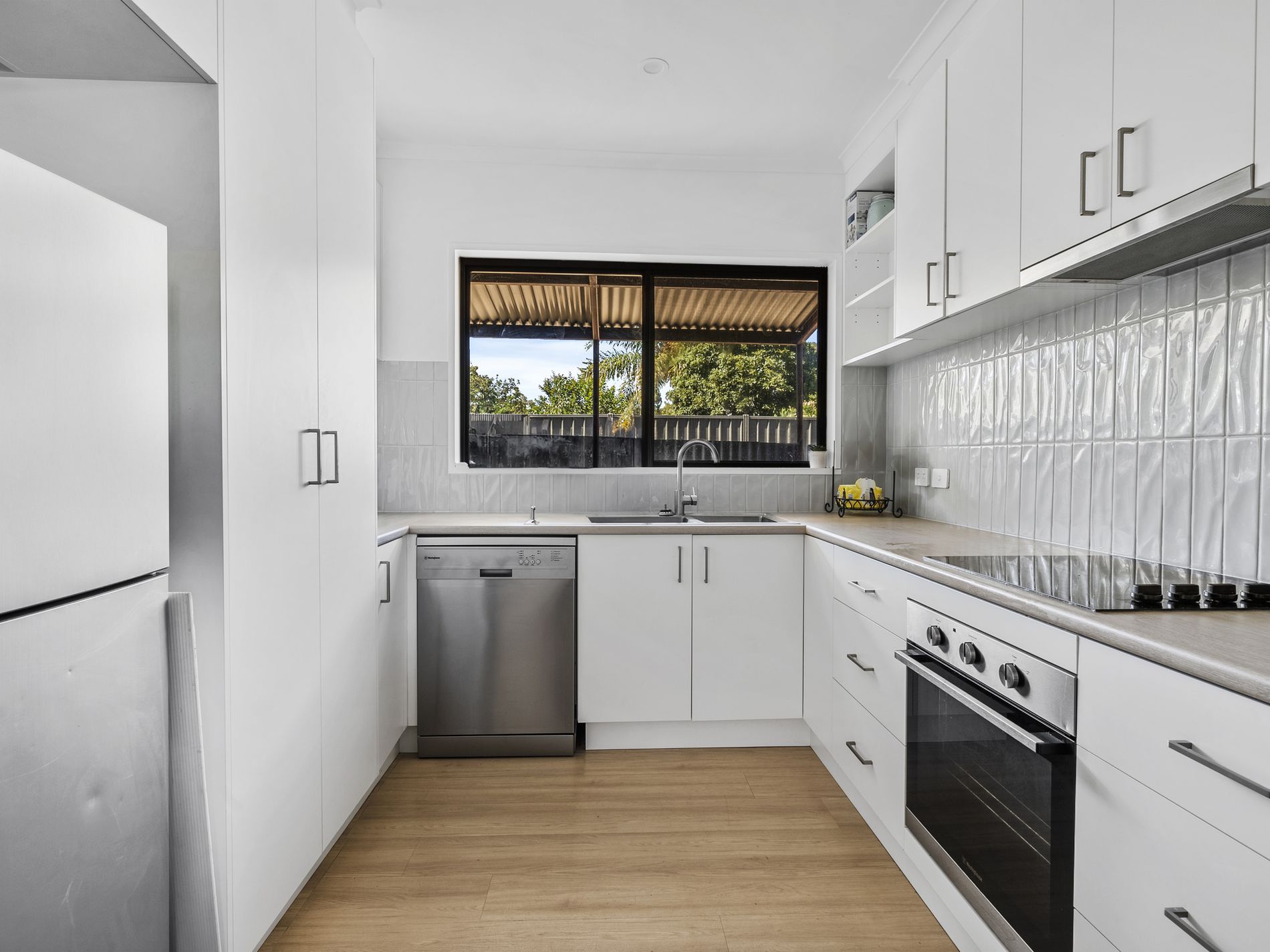 The open-plan lounge and dining area flows seamlessly to a stylish new kitchen featuring new cabinetry, dishwasher, under-bench oven and electric cooktop. The living area is serviced by split system heating and cooling and ceiling fans this area opens via sliding doors to a covered outdoor entertaining space.
