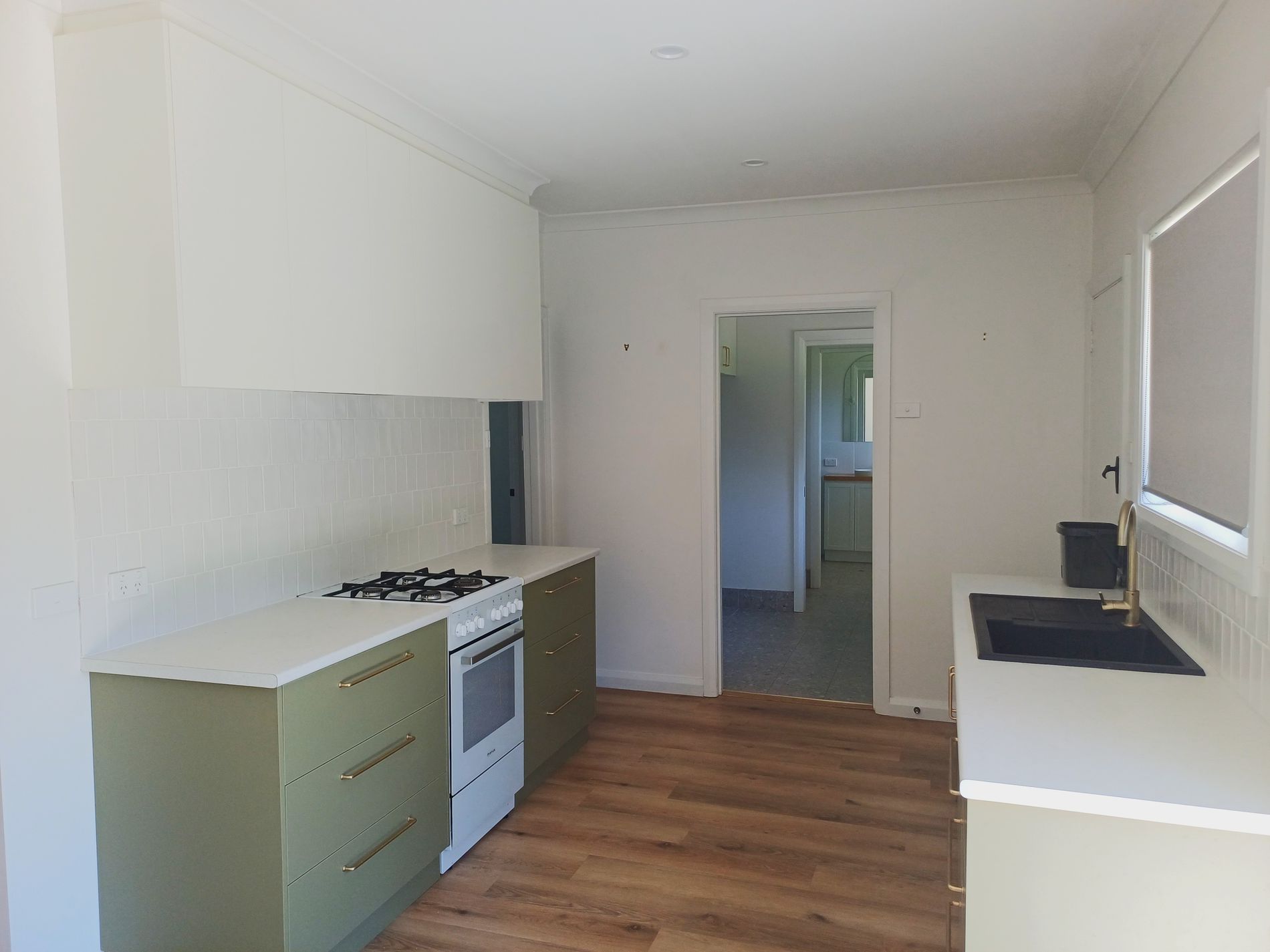 The property includes a generous main bathroom with a bathtub, along with a separate toilet. The fully equipped kitchen features a gas oven and stovetop, as well as ample cupboard space.