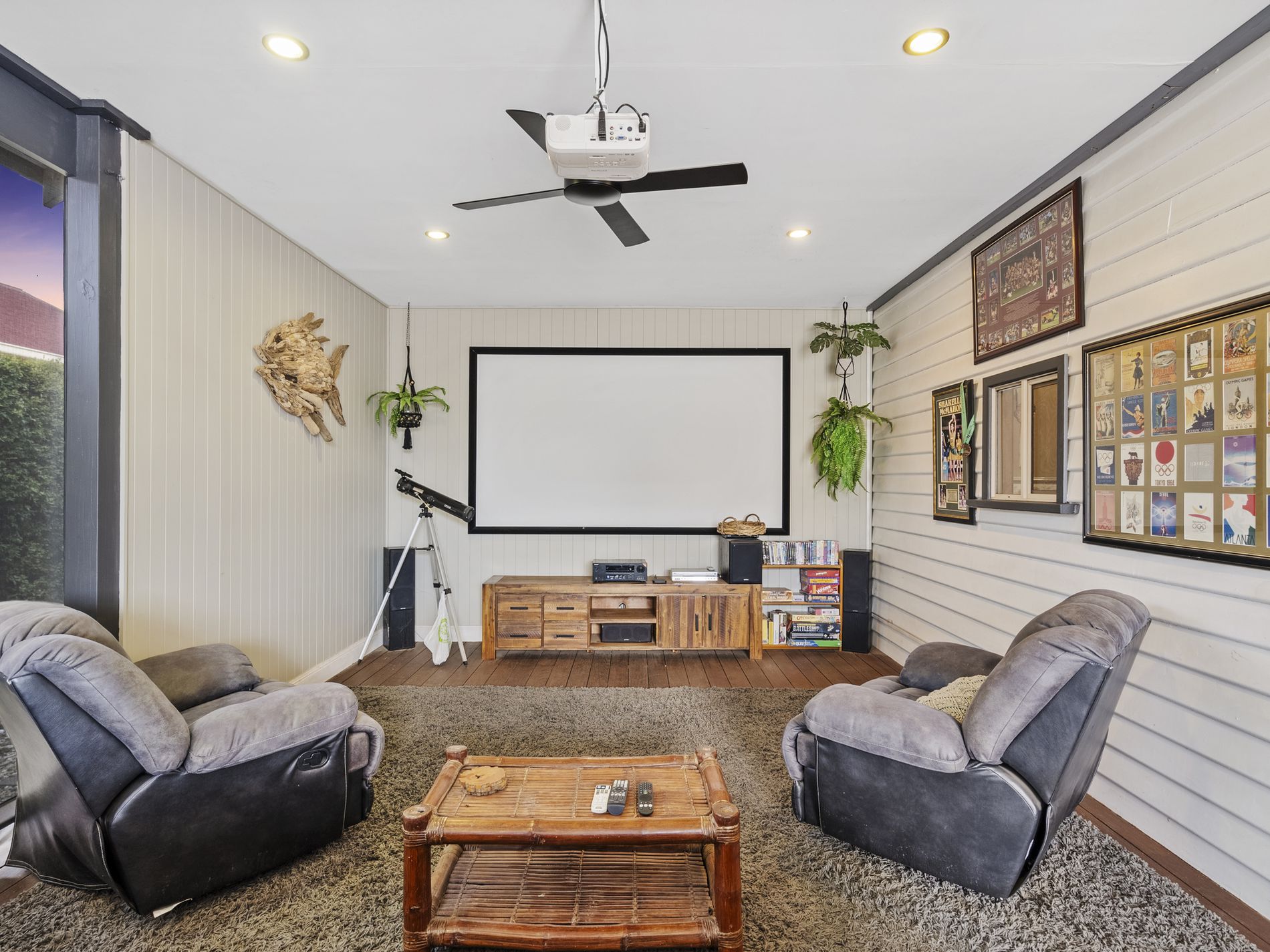The wood heater and reverse cycle ducted air conditioning ensure year-round comfort, while the large outdoor deck is the perfect spot to enjoy the sunshine and featuring pull down blinds and being fully insulated turn this into an outdoor living room to entertain guests or relax and enjoy watching movies on the large projector sceeen.